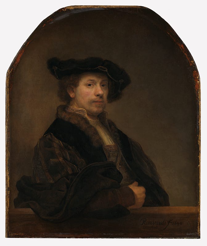 本次居首的是林布蘭的《六十三歲自畫像》,正好補上三月去荷蘭莫瑞泰斯皇家美術館時另一幅《六十三歲自畫像》借展不在館的缺憾。根據國家藝廊的研究,林布蘭在人生的最後一年共有三幅,還有一幅在義大利烏菲茲美術館。